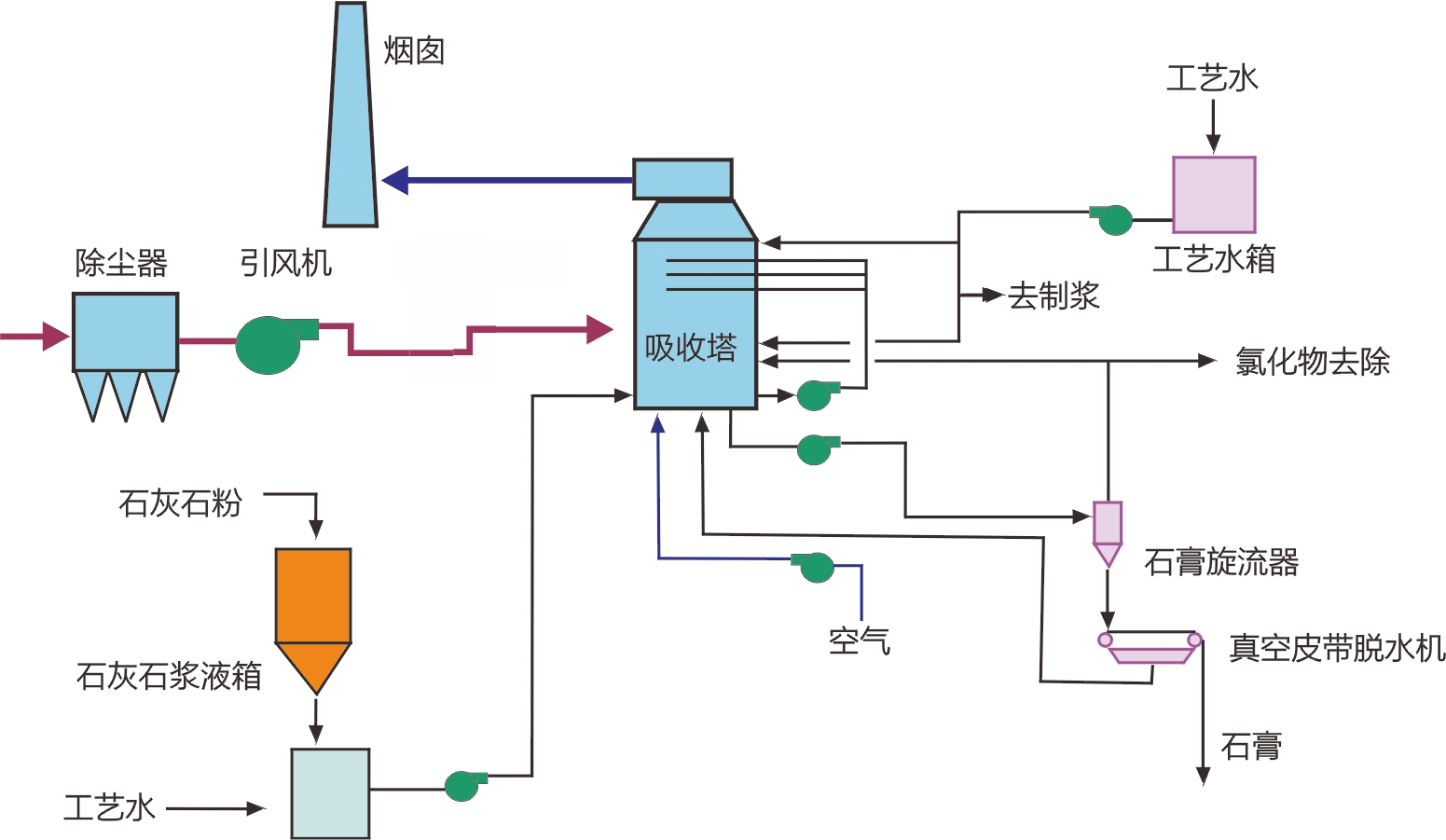 根據當前嚴格的環(huán)保政策和焦化煙氣特點,石灰石—石膏濕法是一種高效、合理的脫硫工藝。