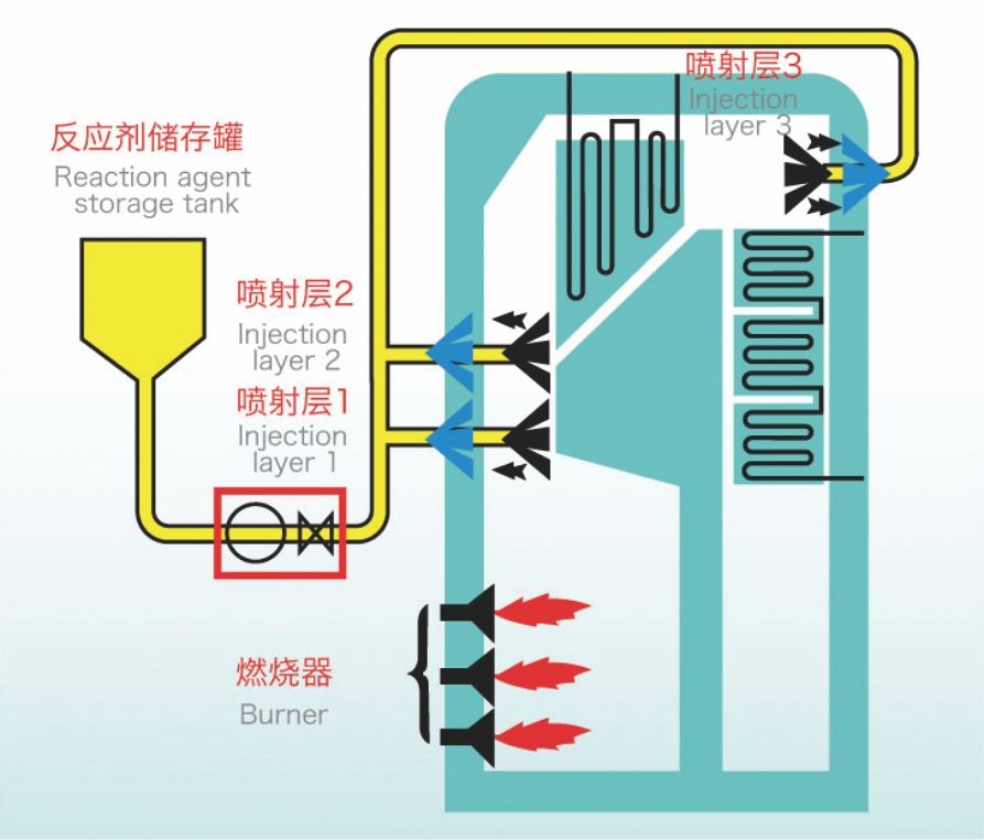 (3)在鍋爐合適位置注入稀釋后的還原劑;