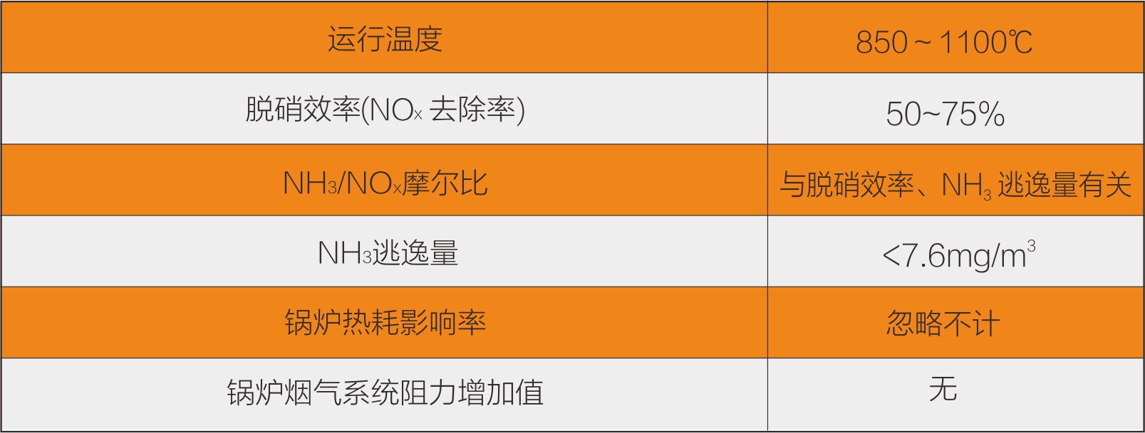 以氨水或尿素等氨基作為還原劑,在溫度850-1100℃條件下還原已生成的一氧化氮,以降低NOx的排放量。整個(gè)過程不需要催化劑,這種方法亦稱為選擇性非催化吸收(SNCR)法。