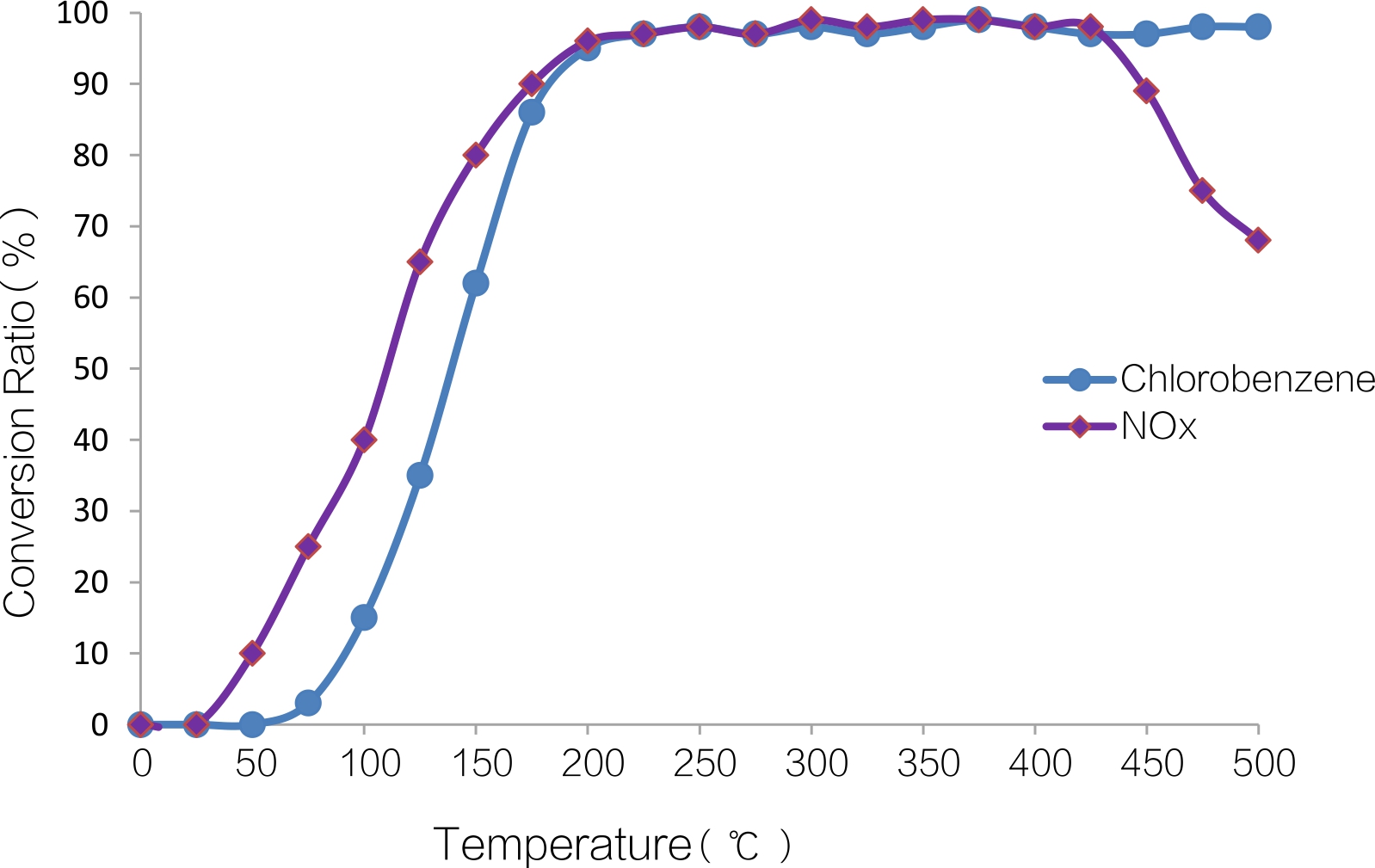 ● 脫二噁英效率:在200~420℃溫度區(qū)間脫除率〉98%。●比表面積:≥70 m2 /g。