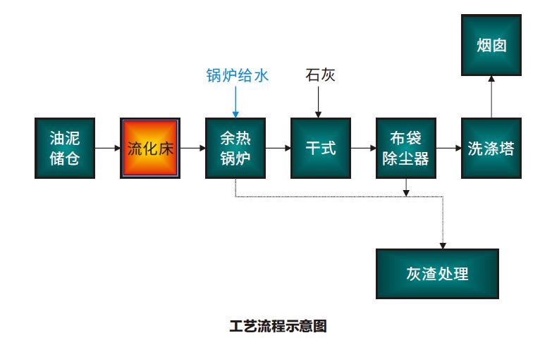 油泥流化焚燒無害化處理工程包括油泥專用焚燒爐,油泥貯存場及與之相關的管網系統,制備系統,儲運系統,熱控系統,電氣系統,煙氣凈化系統和灰渣系統。