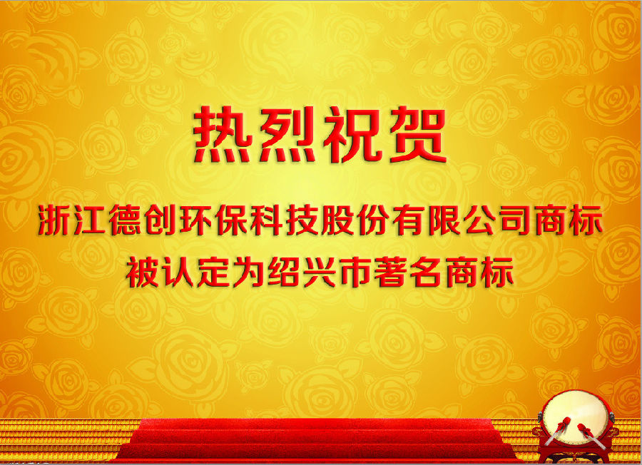 德創(chuàng)環(huán)保商標(biāo)認(rèn)定為紹興市著名商標(biāo)