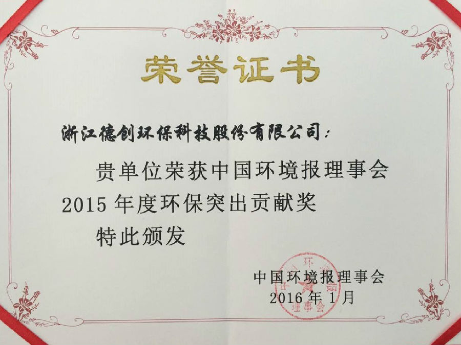 德創(chuàng)環(huán)保被評為2015年度環(huán)保突出貢獻獎
