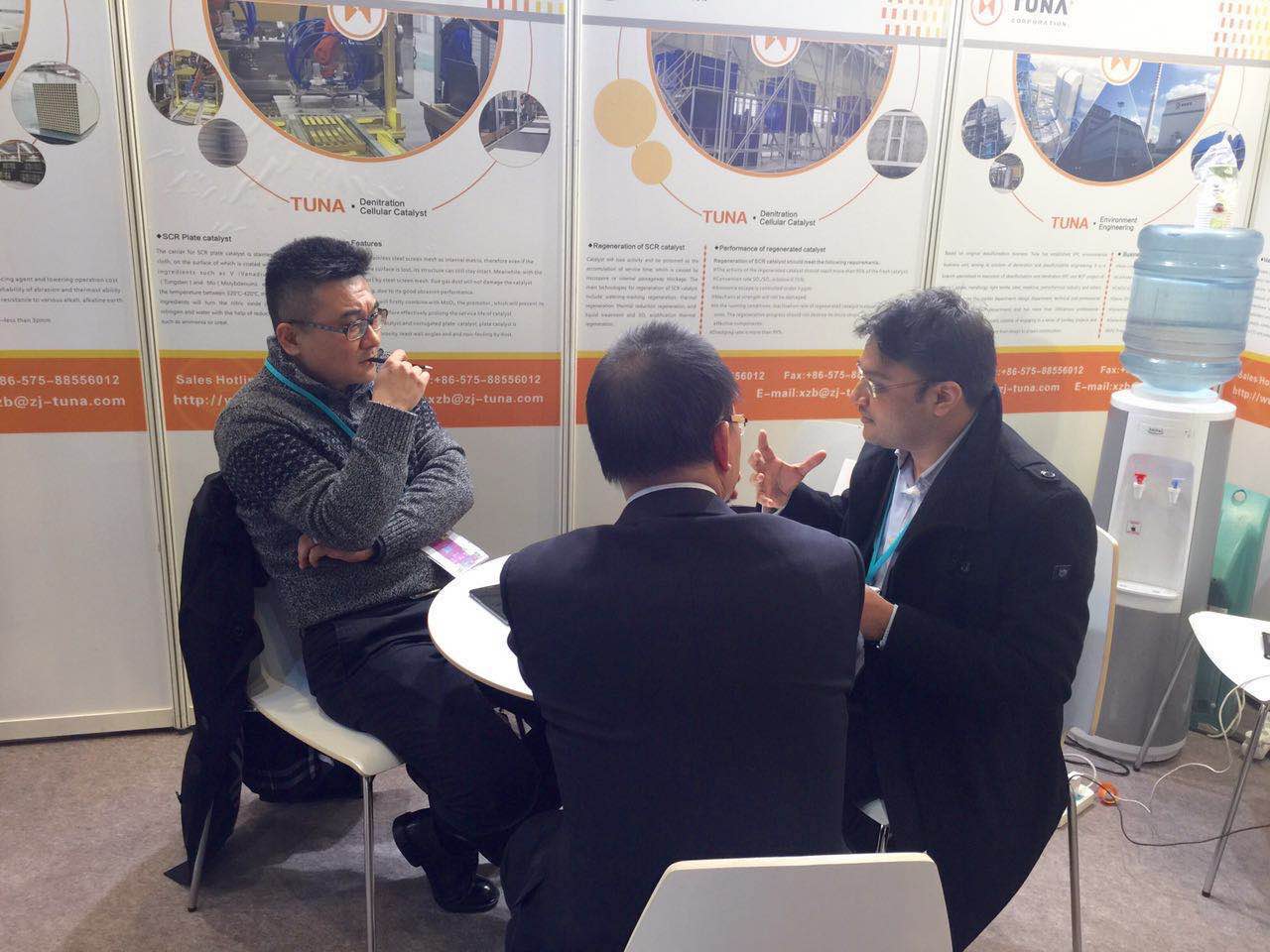 在此次展覽會上,德創環保展出了自主研發設計生產的除塵、脫硫、脫硝等煙氣處理設備,不少客戶前來咨詢了解,對公司的產品性能、技術特性進行深入交談,其中包括英國公司的客戶再商合作事宜。
