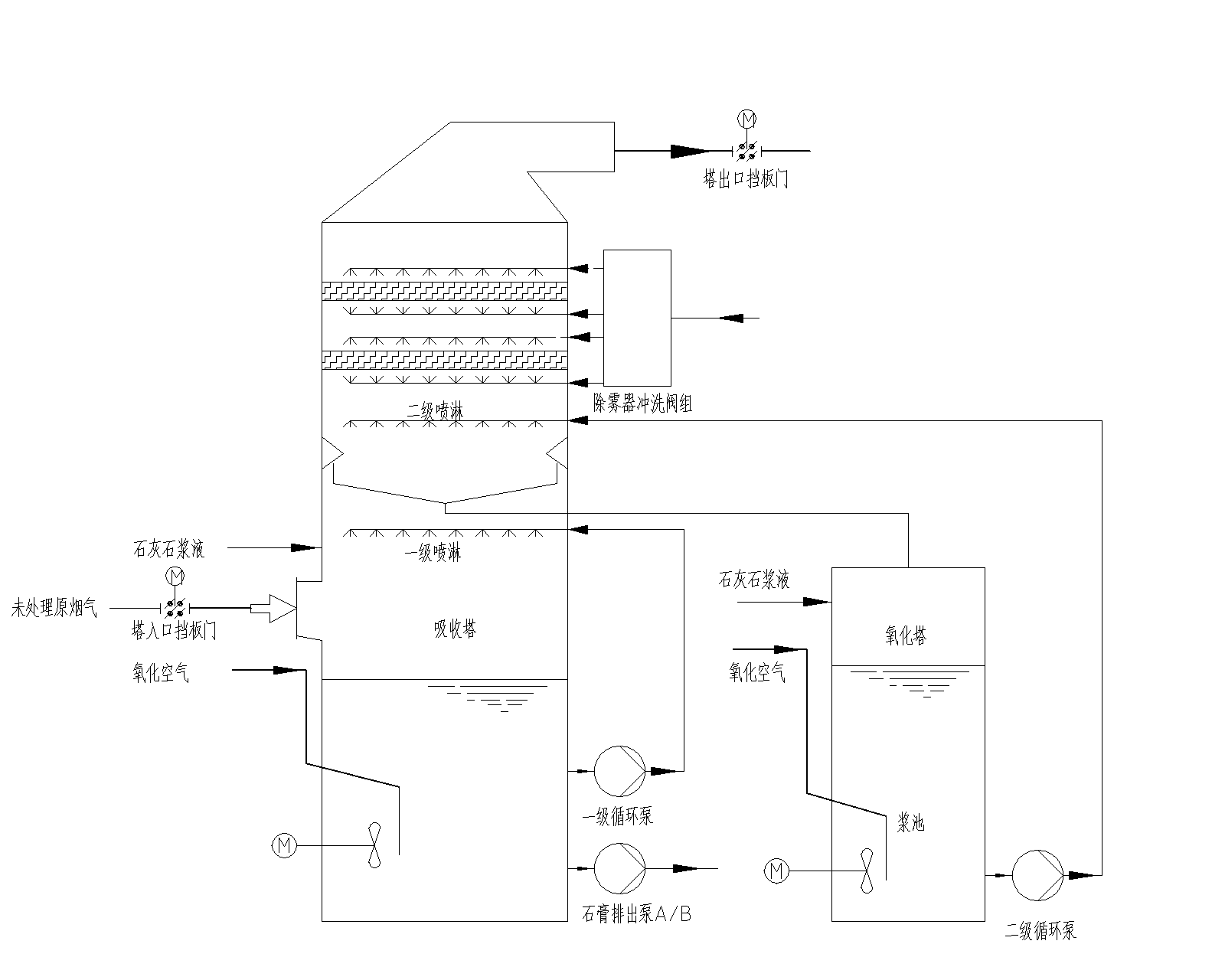 圖2.石膏法單塔雙循環工藝吸收塔流程示意圖