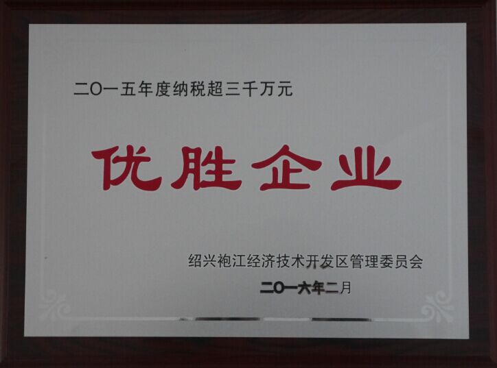 德創(chuàng)環(huán)保被評(píng)為紹興袍江經(jīng)濟(jì)技術(shù)開(kāi)發(fā)區(qū)二〇一五年度納稅超三千萬(wàn)元“優(yōu)勝企業(yè)”