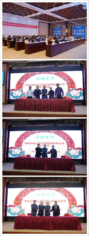 會議上,公司總裁趙總宣布了2017年公司及各事業部高管任命及職責分工,相關高管團隊現場簽訂《2017年各事業部半年度經營目標責任書》,并對新的一年工作進行展望和表態;最后金董總結發言。金董肯定了過去一年各事業部工作業績,并指出2017年于德創環保是機遇與挑戰并存的一年,德創環保將于年初實現上市,這需要我們進一步發揚“求精創新、嚴謹務實”的作風,做大做強工程板塊 ,做優做精制造板塊 ,布局水處理、土壤治理、碳排放治理板塊,開拓海外市場,積極部署并落實各項有效措施,使德創成為國內一流的環保企業。