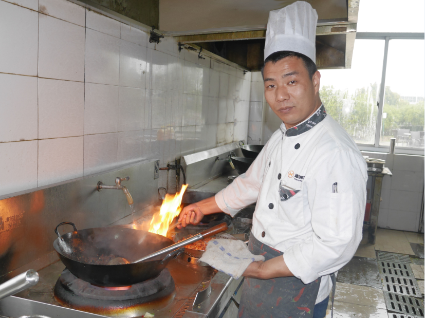陳:首先肯定是我們食堂自己工作氛圍好吧。我們食堂現在12個人,很團結,誰忙不過來旁邊的同事都會搭把手,雖然不是什么大忙,但你心里會一暖,所以工作還是很開心的。另外黃建豐雖然是我領導,但沒什么架子,忙不過來時他也會親自來幫忙燒菜,并且教我很多東西,不會藏著掖著,我覺得很受益。