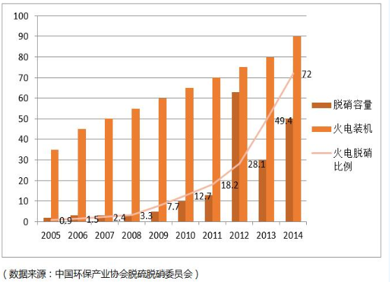 自從2012年開始,火電行業開始變革,與此同時,面對污染物基數逐年增加,污染物排放標準日益嚴格,電力行業按照國家要求,一直致力于燃煤污染物的全面治理,因此脫硝產業的主要收入來源是在發電站鍋爐領域。