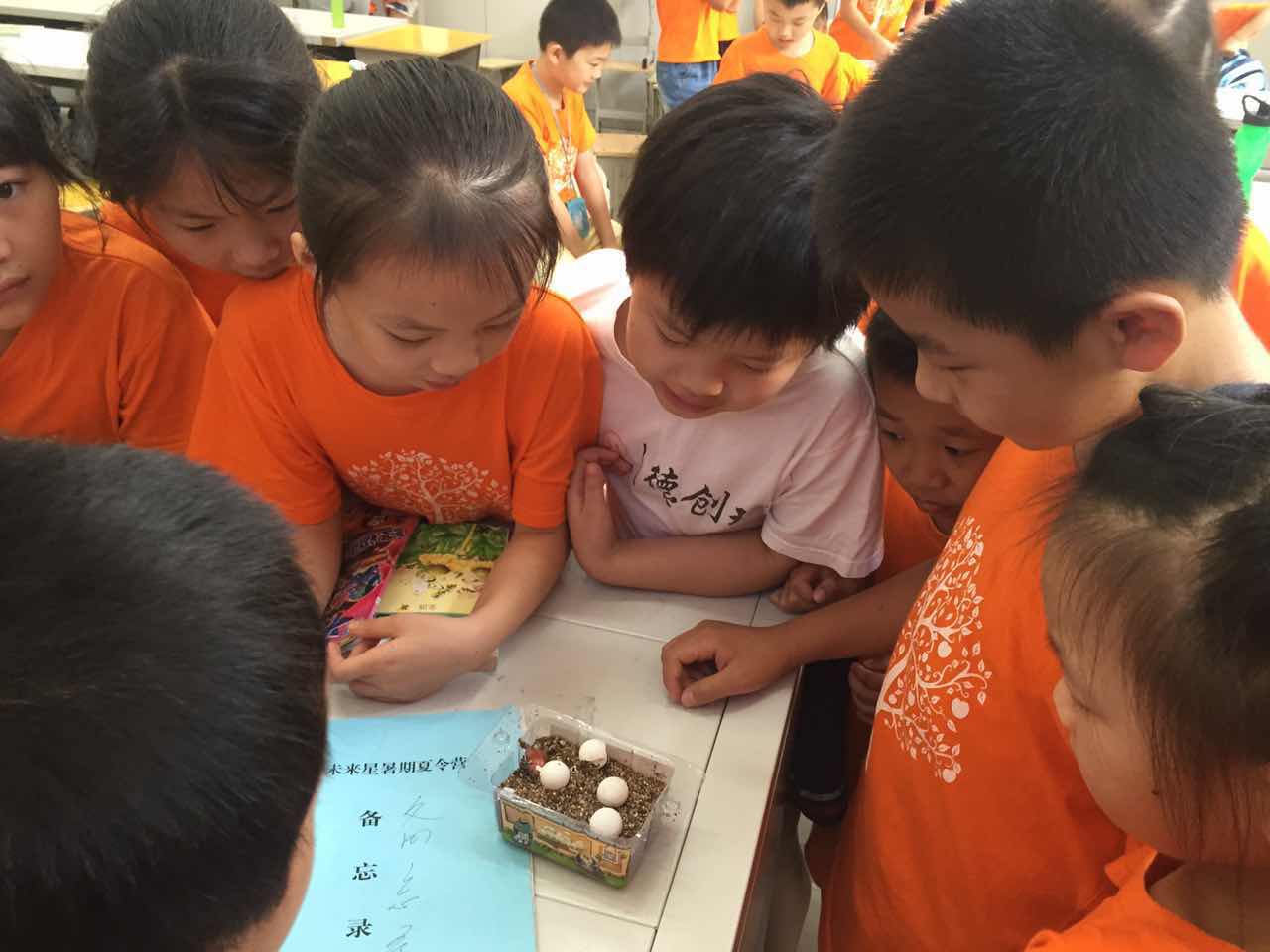 猜猜小朋友們圍在一起看蛋是幾個意思?沒錯,經過老師的指導,已經掌握孵化烏龜蛋的知識點的他們,正靜靜等待小烏龜破殼而出的那一刻。