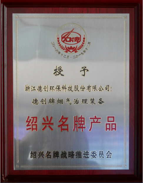 德創環保煙氣治理裝備被認定為“紹興名牌產品”