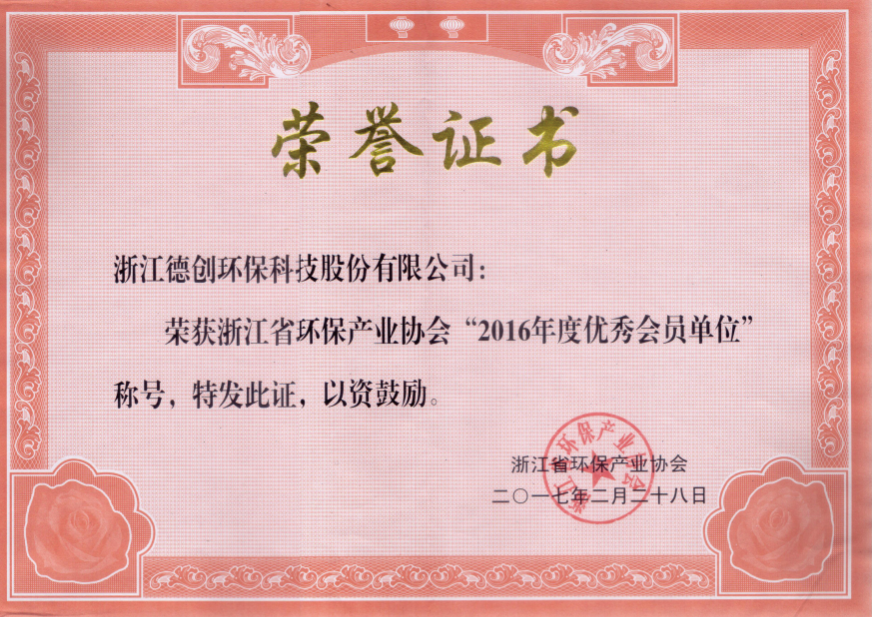2月28日,德創環保被浙江省環保產業協會評為“2016年度優秀會員單位”,公司副總裁徐總獲得由浙江省環保產業協會頒發的優秀個人稱號。此次獲獎,既是省環保產業協會對德創環保的肯定,更是激勵,德創環保將秉承“求精創新”的精神,為環保事業再作貢獻。