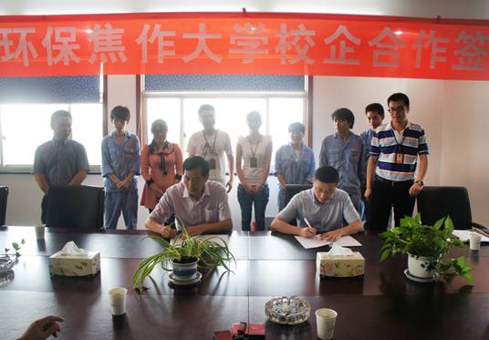 2013年8月14日,公司總經理趙博,副總經理徐明、劉飛,人力資源管理中心謝吉,一同熱忱會見來訪的焦作大學化工與環境工程學院田京城院長一行,雙方就校企合作項目進行了深入交流,并共同出席簽約授牌儀式。