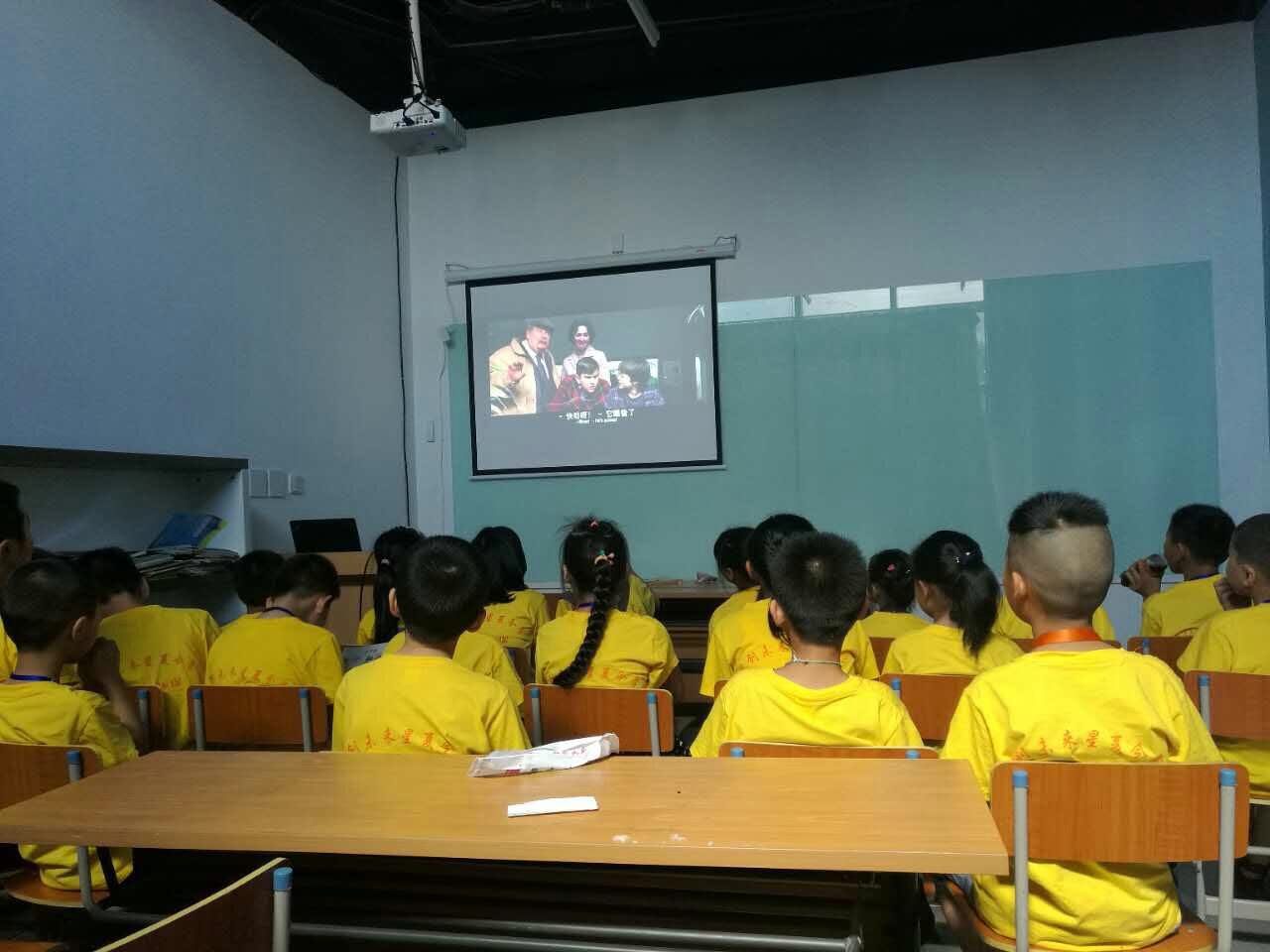 業余時間,大家坐在一起觀看兒童電影,瞧大家這專注勁兒!