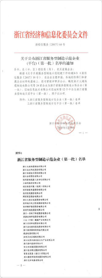 德創環保被評為浙江省第一批服務型制造示范企業