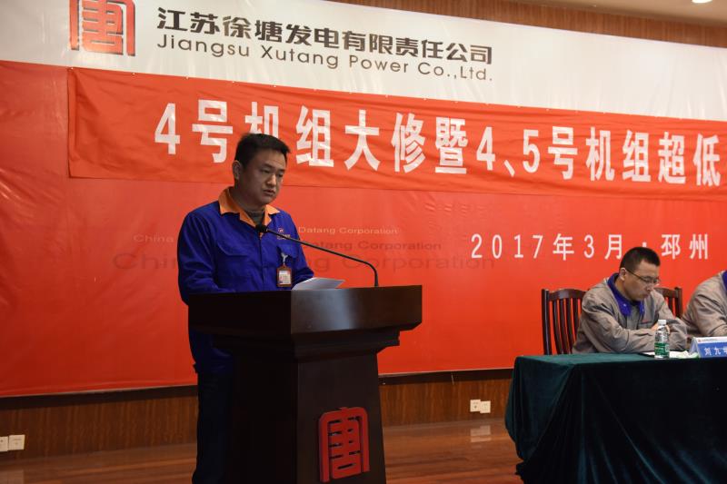 3月30日,徐塘電廠4號機組大修暨4、5號機組超低排放改造工程動員會召開,德創環保徐塘項目部全體管理人員及施工人員到會。