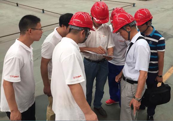 賴科長一行對鋼結構的材料規格、焊接工藝等進行了相關的檢測,并與德創環保接待人員進行了技術及工藝方面的交流。賴科長充分肯定了德創環保對環保設備生產質量與進度方面的嚴格控制體系,對德創環保的產品質量表示了認可。