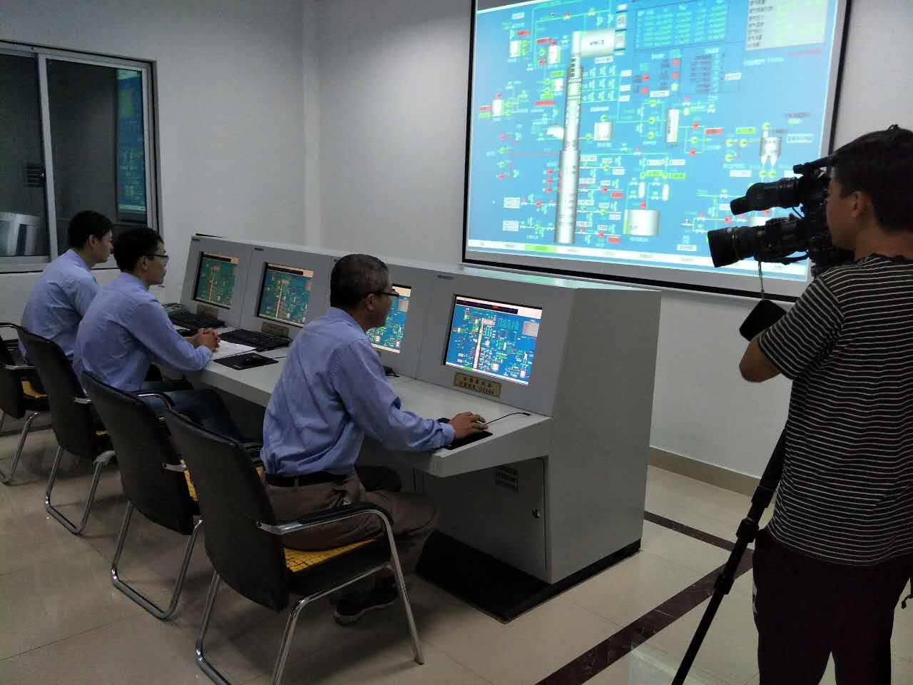 電視臺工作人員對中成熱電廠秦總工進(jìn)行現(xiàn)場采訪,秦總工對我公司承建的超低排放改造工程給予肯定并給出高度評價。