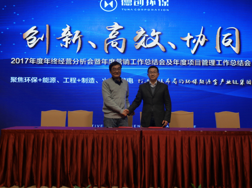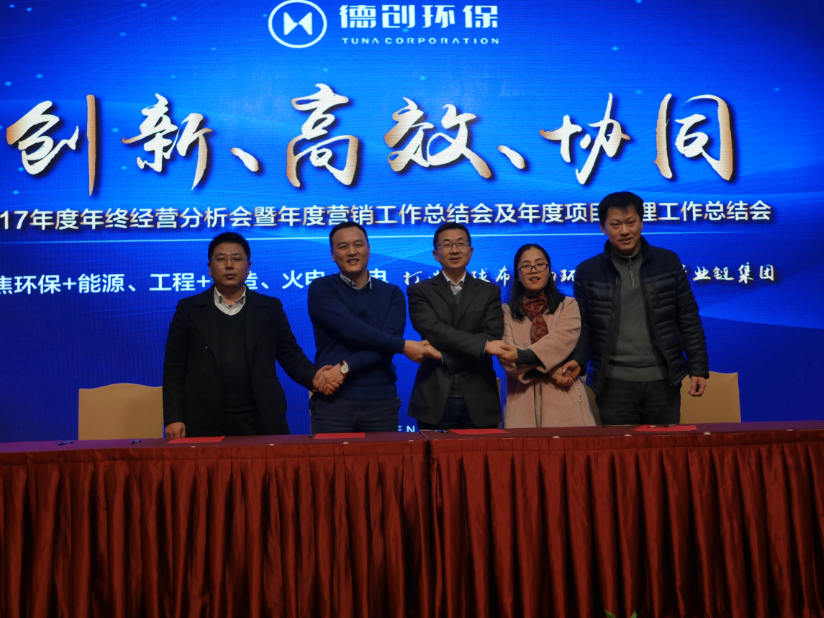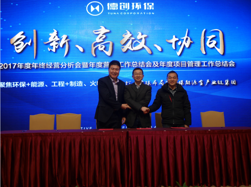 會議上,公司總裁趙總宣布了2018年公司及各事業部高管任命及職責分工,相關高管團隊現場簽訂《2018年各事業部年度經營目標責任書》,并對新的一年工作進行布置;最后公司董事長金董總結發言,金董指出2018年是德創環保充滿機遇與挑戰的一年,要求全體德創人齊心協力,創新、高效、協同,積極部署并貫徹落實。