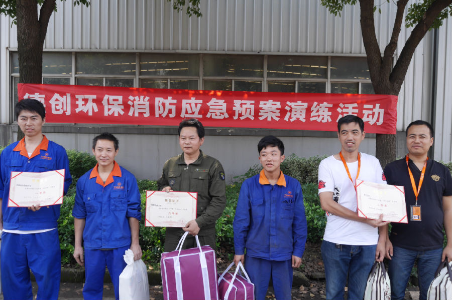 普及緊急救援知識(shí) 提升安全生產(chǎn)意識(shí)——德創(chuàng)環(huán)保舉行消防演練比賽及安全知識(shí)競(jìng)賽