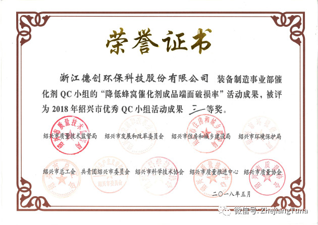 近日,紹興市質量協會舉辦的2018年紹興優秀質量管理小組(QC小組)活動評選中,德創環保獲三項佳績!