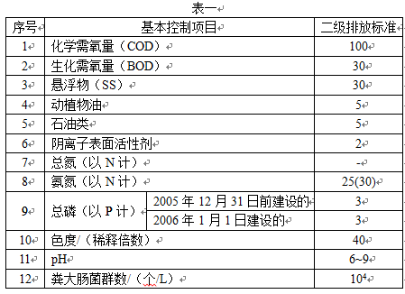 新疆所建的城市污水處理廠大多數(shù)設(shè)計出水水質(zhì)為《城鎮(zhèn)污水處理廠污染物排放標準》(GB18918-2002)中的二級標準,具體水質(zhì)指標如表一。
