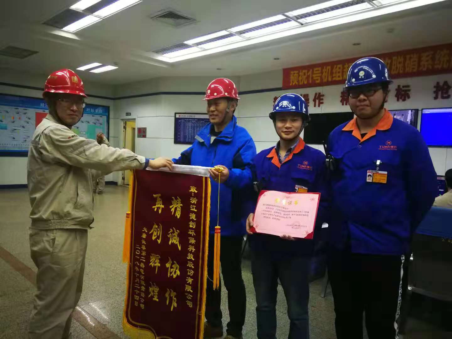 近日,德創環保喜獲來自大唐長春第二熱電有限責任公司生產廠長頒發的感謝錦旗和榮譽證書。