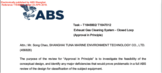 近日,公司子公司上海德創海洋環境科技有限公司(以下簡稱“德創海洋”)設計的船舶EGCS閉式系統方案獲得美國船級社原理性認證。