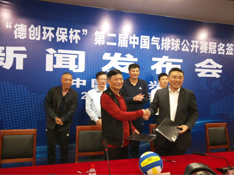 5月15日,“德創環保杯”第二屆2019年中國氣排球公開賽新聞發布會在我市奧體中心舉行,德創環保與紹興市排球協會圓滿舉行了簽約儀式。