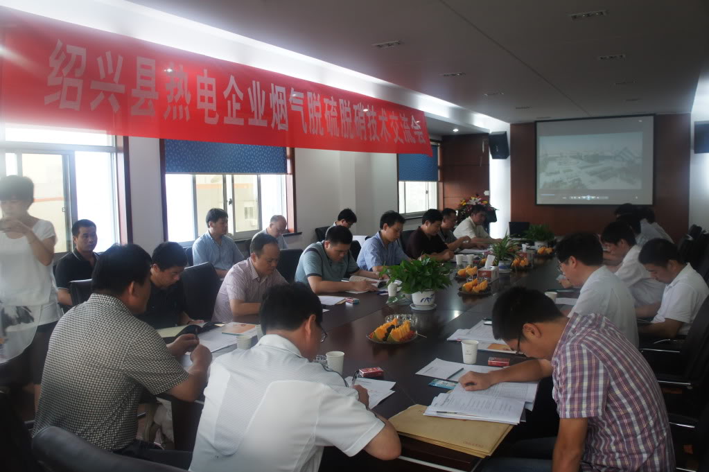 8月22日 紹興縣熱電企業煙氣脫硫脫硝技術交流會在我公司召開,本次會議共匯聚了來自紹興、蕭山等10多家熱電企業的專家,大家齊聚一堂與我公司技術專家探討脫硫脫硝技術。縣環保局陳新榮副局長、熱電協會祁德林秘書長共同出席本次交流會。我公司脫硫脫硝產品的技術優異性能得到了在場嘉賓的一致好評,會場反響熱烈。
